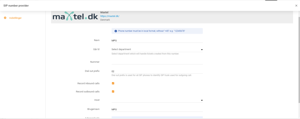 Maxtel.dk ist bereits ein Teil von LiveAgent. Melden Sie sich einfach an und gehen Sie auf Konfigurationen > Aufruf > Nummern> Maxtel.dk. Fügen Sie die VoIP-Nummer hinzu und das war's. Es ist einsatzbereit.