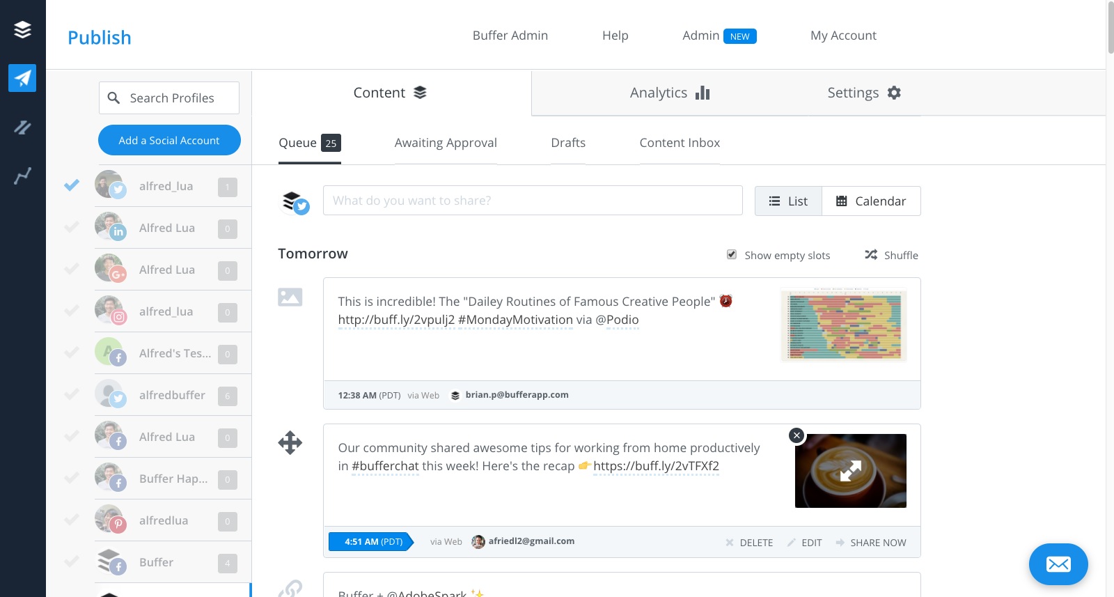 Buffer lässt sich in fast 30 andere Lösungen integrieren, darunter Zapier, automate.io und integromat, sodass die Möglichkeiten endlos sind.