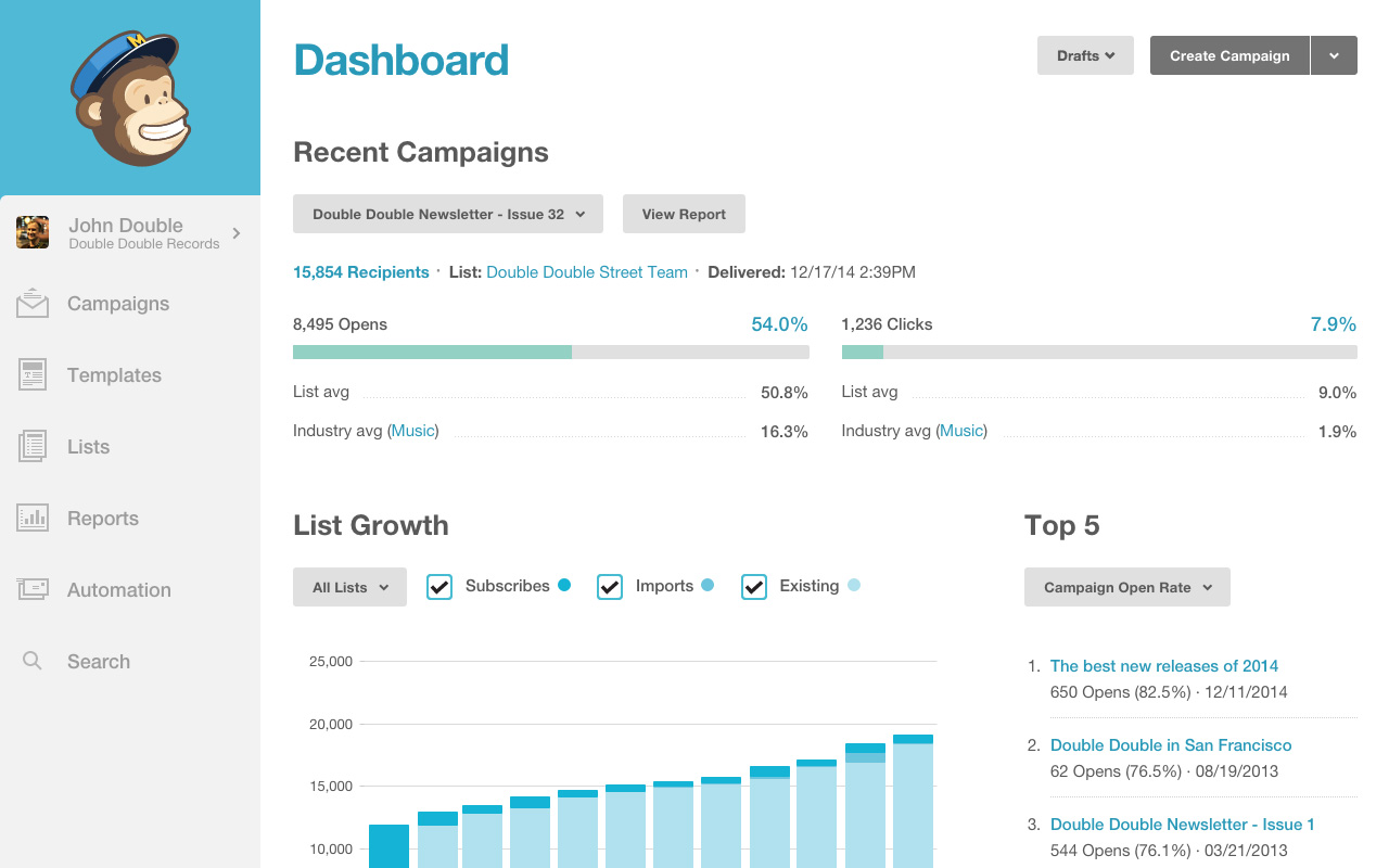 MailChimp-Benutzer schwärmen davon, wie großartig seine Funktionen für kleine Unternehmen sind und wie einfach es zu bedienen ist. Zum Beispiel macht es sein Drag-and-Drop-E-Mail-Builder einfach, schöne E-Mails zu formatieren, und seine umfangreiche Integrationsliste macht es einfach, Daten mit externen CRMs und dergleichen zu synchronisieren.